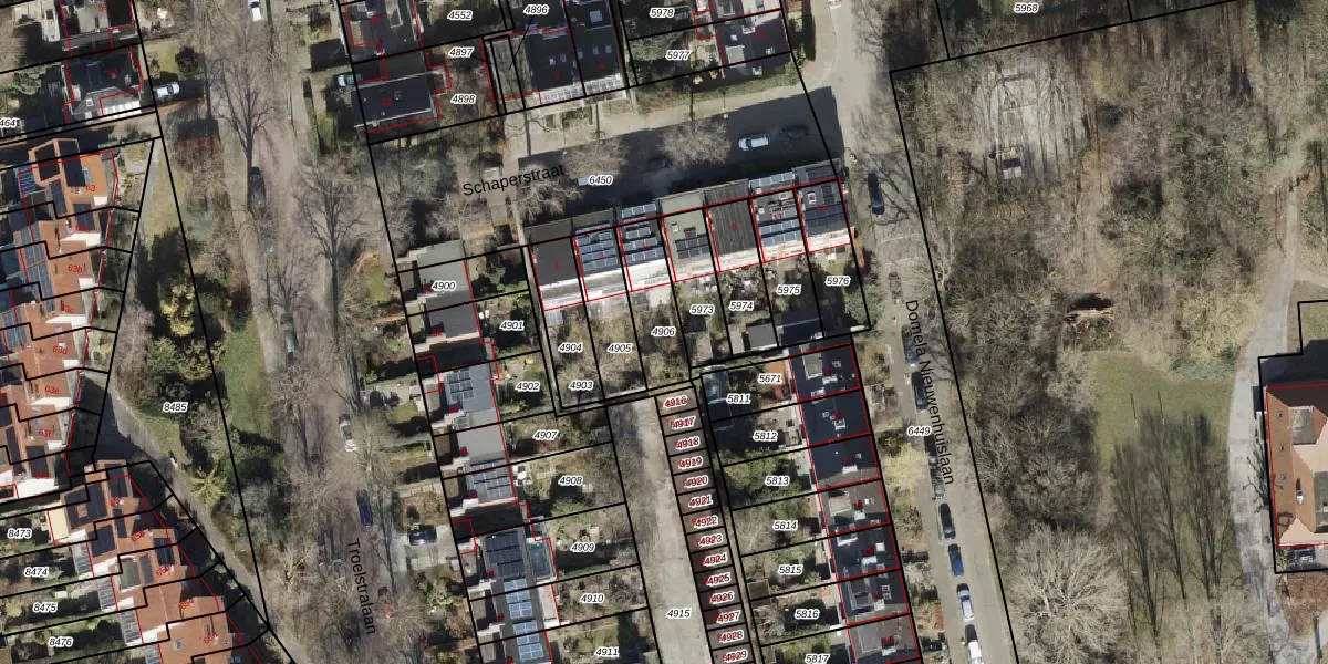 Gebruik de zoekbalk of klik op een perceel om informatie over het perceel te bekijken.