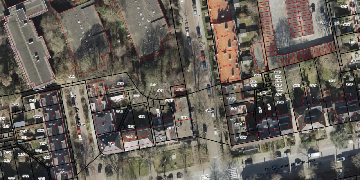 Gebruik de zoekbalk of klik op een perceel om informatie over het perceel te bekijken.