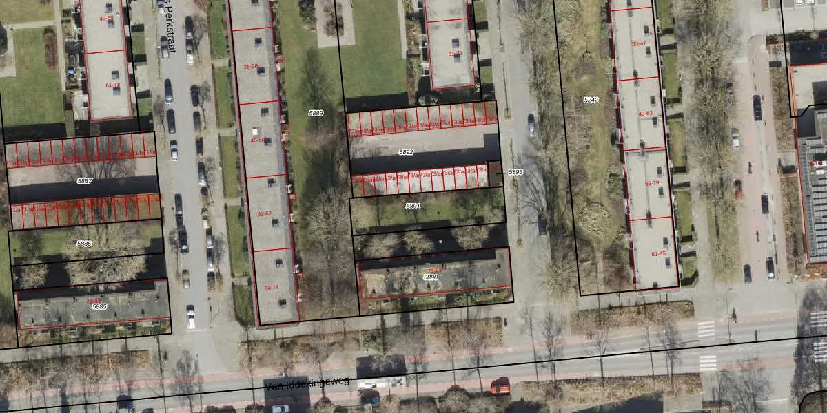 Gebruik de zoekbalk of klik op een perceel om informatie over het perceel te bekijken.