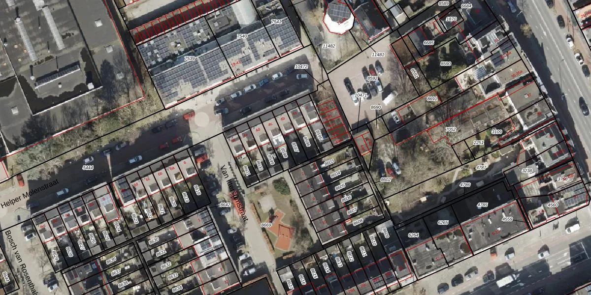 Gebruik de zoekbalk of klik op een perceel om informatie over het perceel te bekijken.