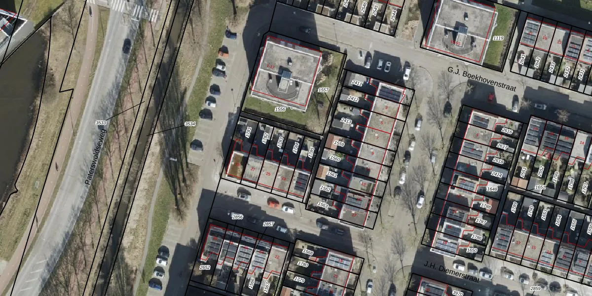 Gebruik de zoekbalk of klik op een perceel om informatie over het perceel te bekijken.