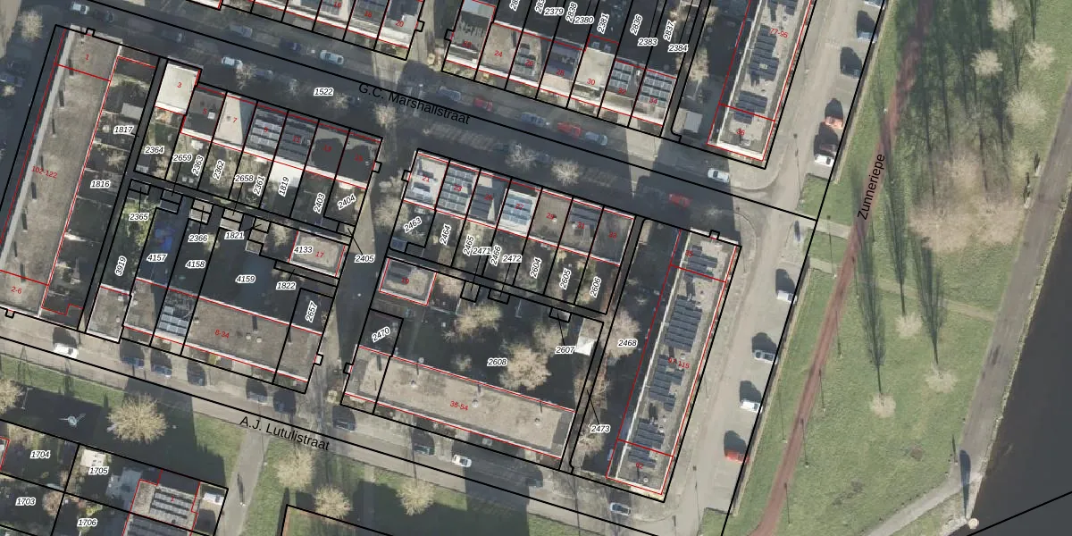 Gebruik de zoekbalk of klik op een perceel om informatie over het perceel te bekijken.