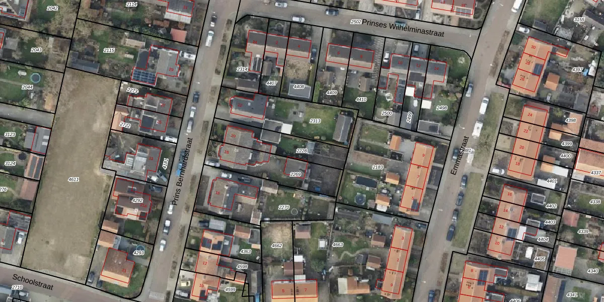 Gebruik de zoekbalk of klik op een perceel om informatie over het perceel te bekijken.