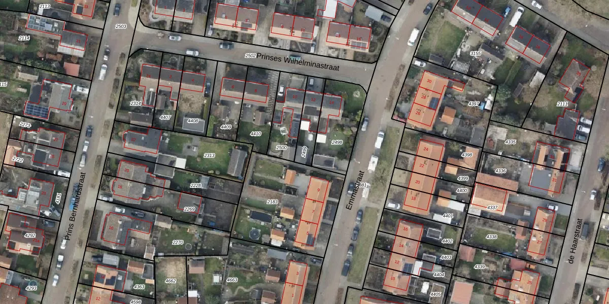 Gebruik de zoekbalk of klik op een perceel om informatie over het perceel te bekijken.