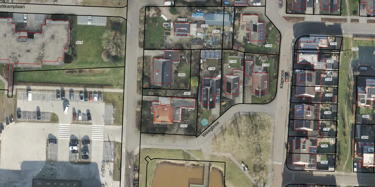 Gebruik de zoekbalk of klik op een perceel om informatie over het perceel te bekijken.