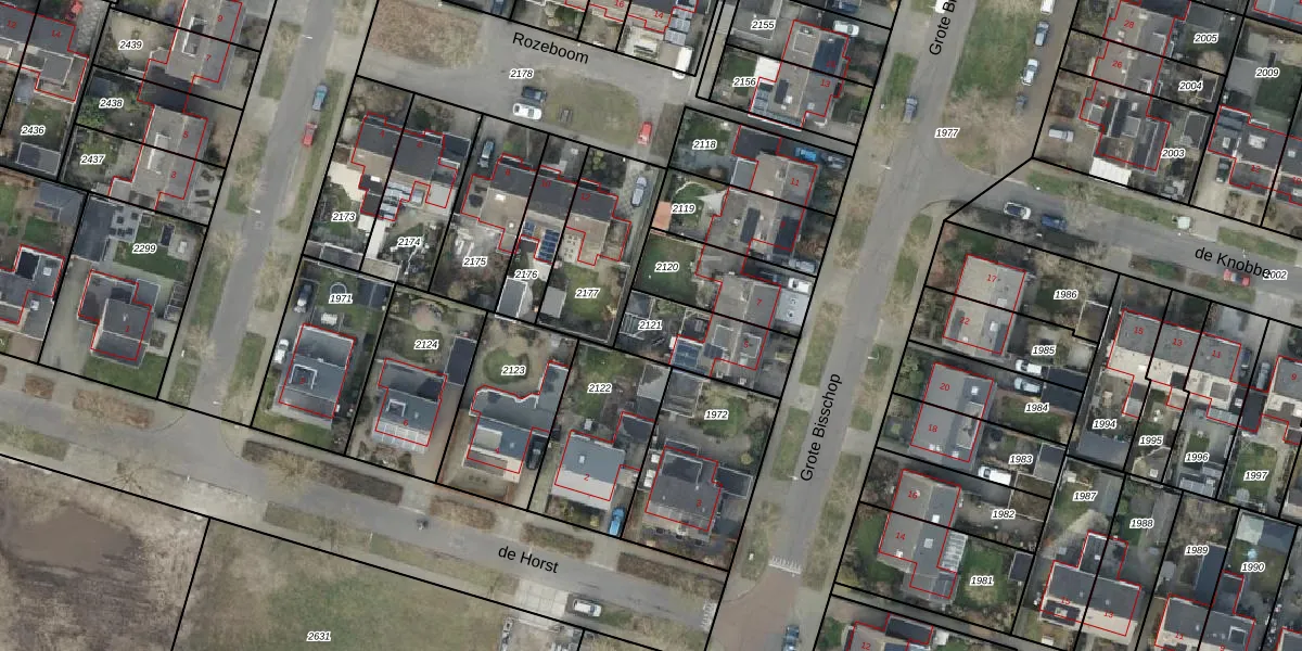 Gebruik de zoekbalk of klik op een perceel om informatie over het perceel te bekijken.