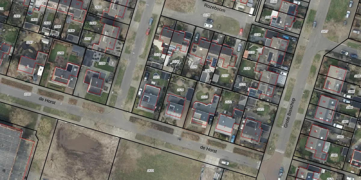 Gebruik de zoekbalk of klik op een perceel om informatie over het perceel te bekijken.