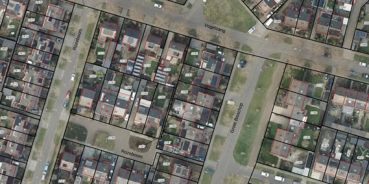 Gebruik de zoekbalk of klik op een perceel om informatie over het perceel te bekijken.