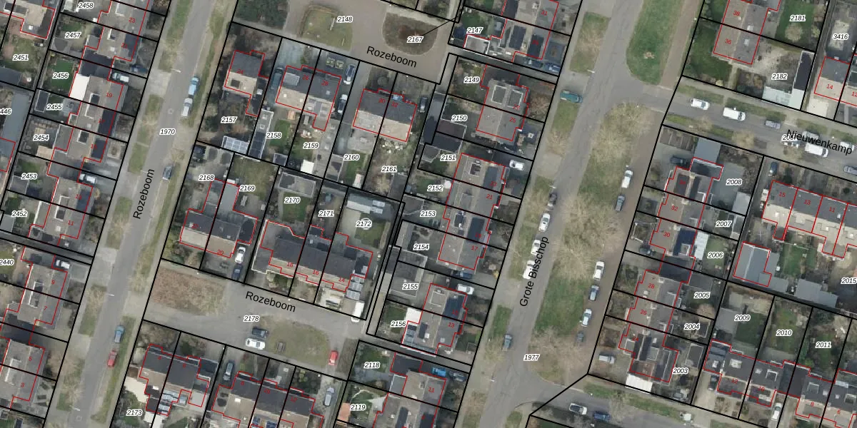 Gebruik de zoekbalk of klik op een perceel om informatie over het perceel te bekijken.