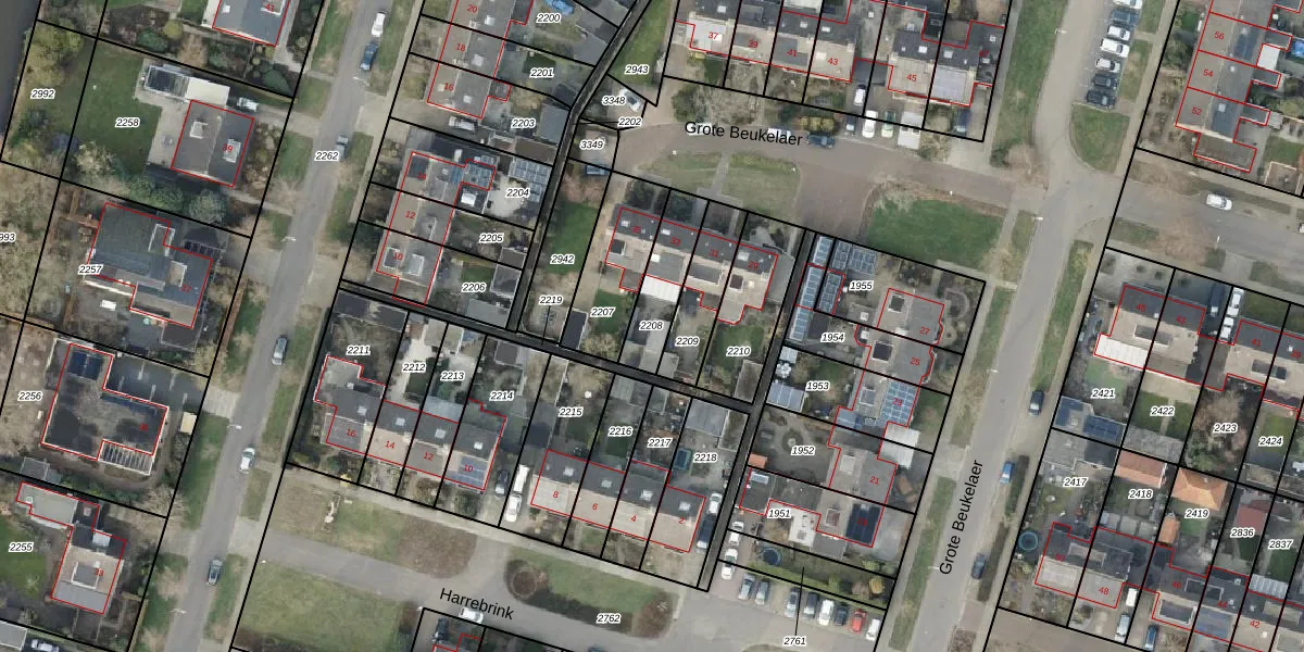 Gebruik de zoekbalk of klik op een perceel om informatie over het perceel te bekijken.