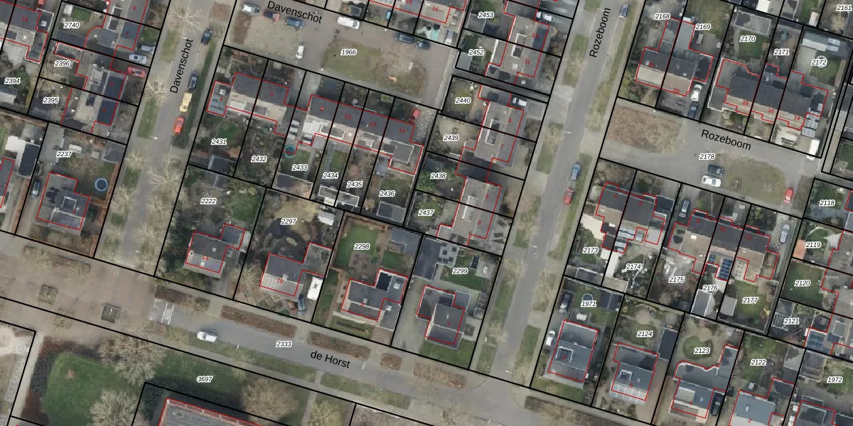 Gebruik de zoekbalk of klik op een perceel om informatie over het perceel te bekijken.
