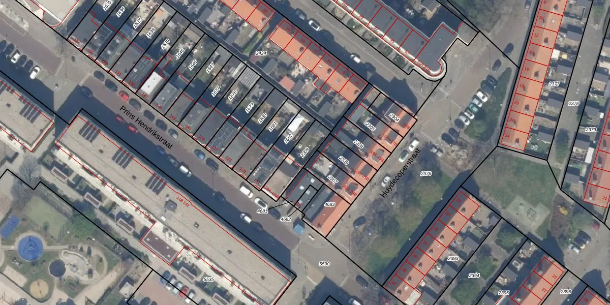 Gebruik de zoekbalk of klik op een perceel om informatie over het perceel te bekijken.