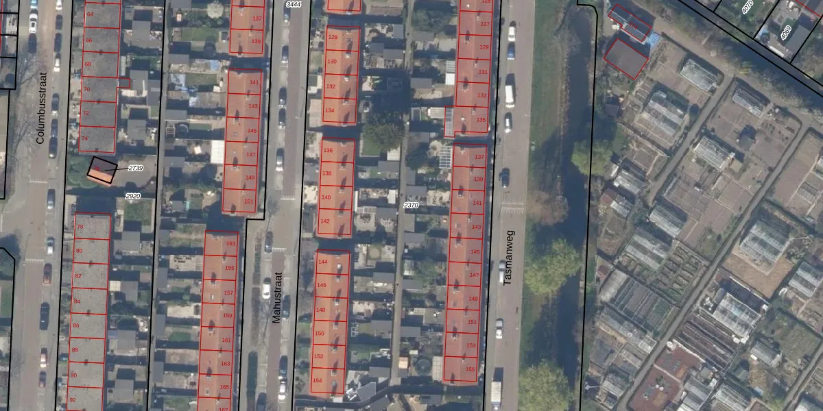 Gebruik de zoekbalk of klik op een perceel om informatie over het perceel te bekijken.