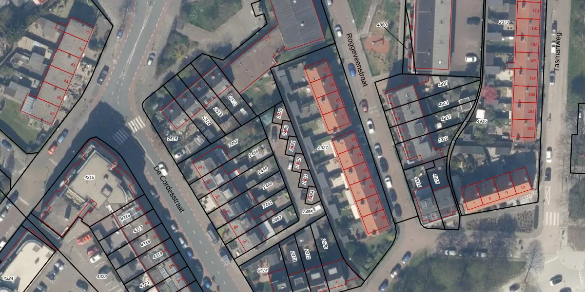 Gebruik de zoekbalk of klik op een perceel om informatie over het perceel te bekijken.