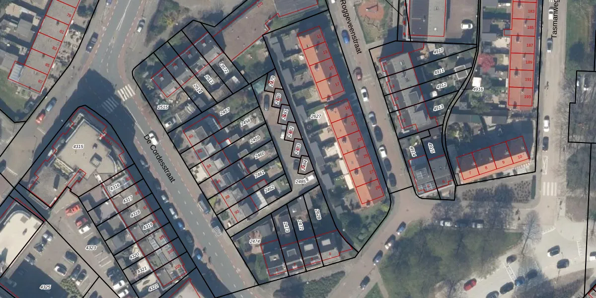 Gebruik de zoekbalk of klik op een perceel om informatie over het perceel te bekijken.