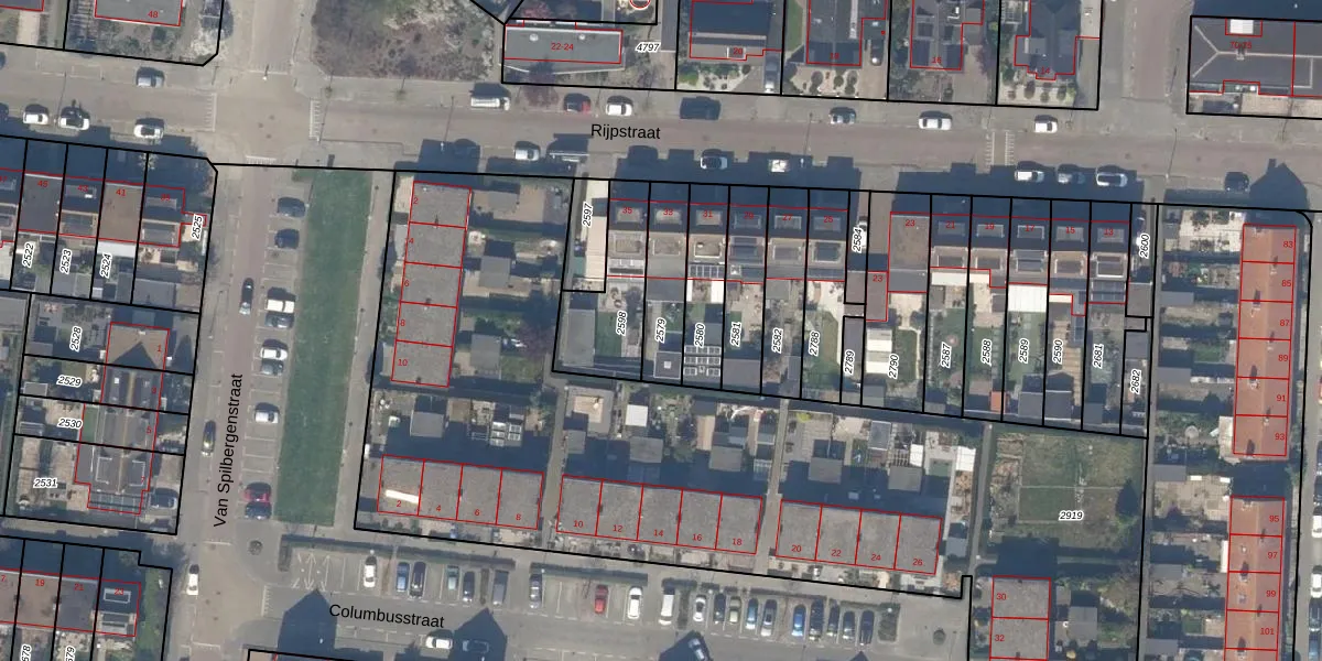 Gebruik de zoekbalk of klik op een perceel om informatie over het perceel te bekijken.