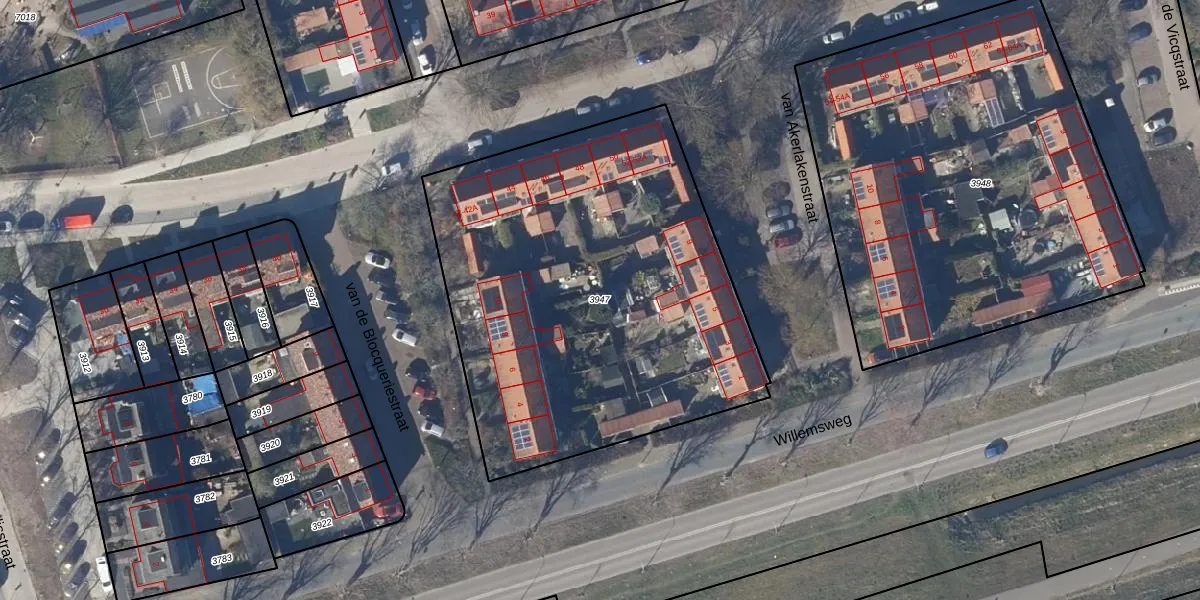 Gebruik de zoekbalk of klik op een perceel om informatie over het perceel te bekijken.