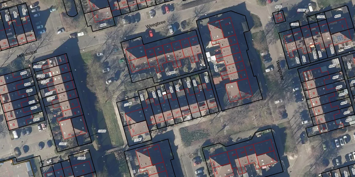 Gebruik de zoekbalk of klik op een perceel om informatie over het perceel te bekijken.