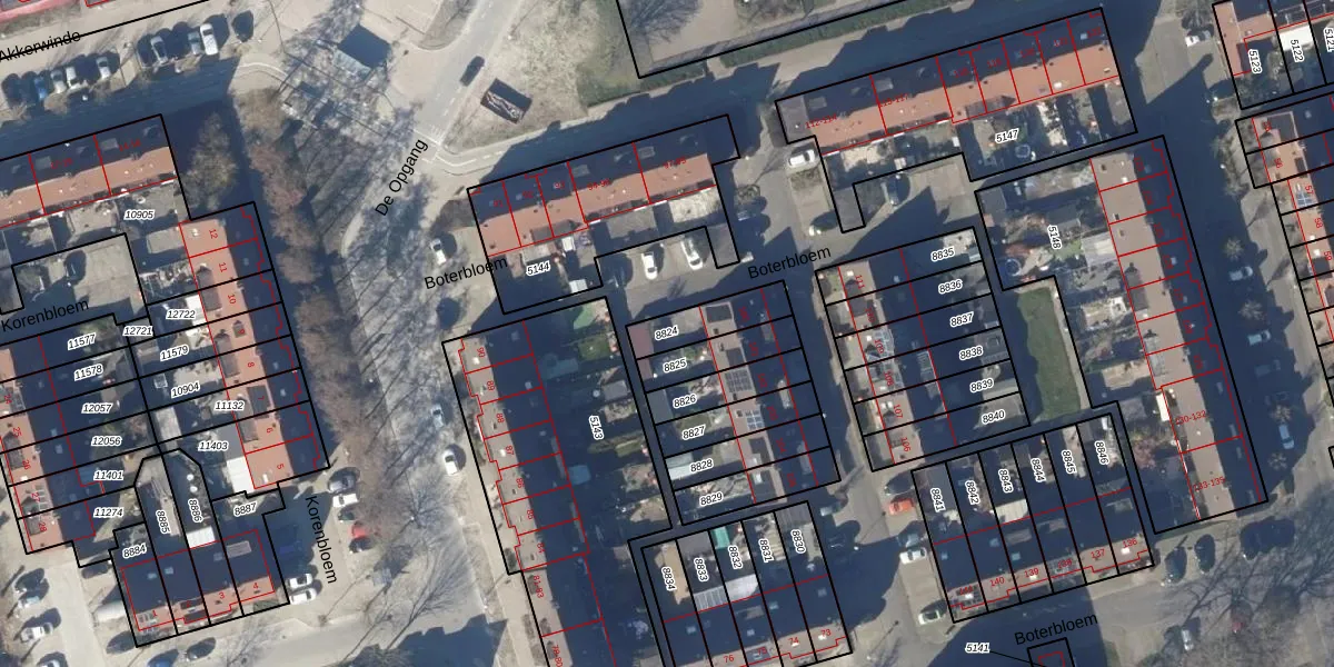 Gebruik de zoekbalk of klik op een perceel om informatie over het perceel te bekijken.