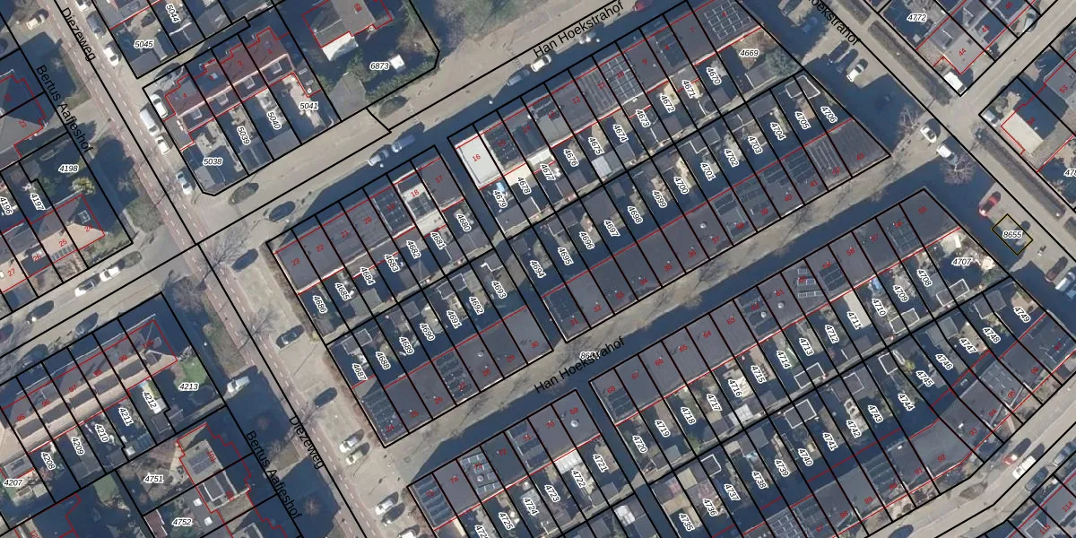 Gebruik de zoekbalk of klik op een perceel om informatie over het perceel te bekijken.
