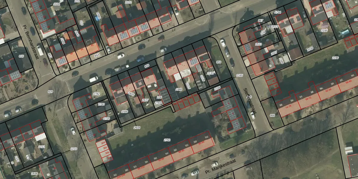 Gebruik de zoekbalk of klik op een perceel om informatie over het perceel te bekijken.
