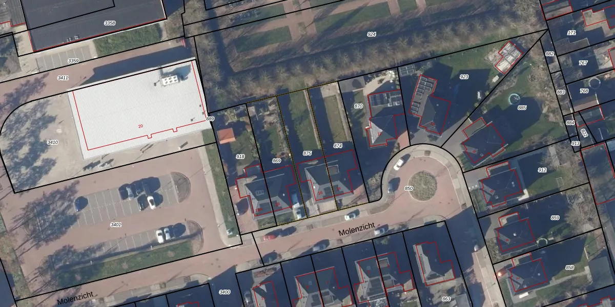 Gebruik de zoekbalk of klik op een perceel om informatie over het perceel te bekijken.