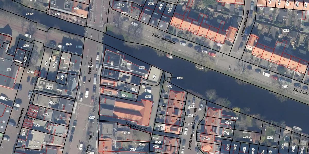Gebruik de zoekbalk of klik op een perceel om informatie over het perceel te bekijken.