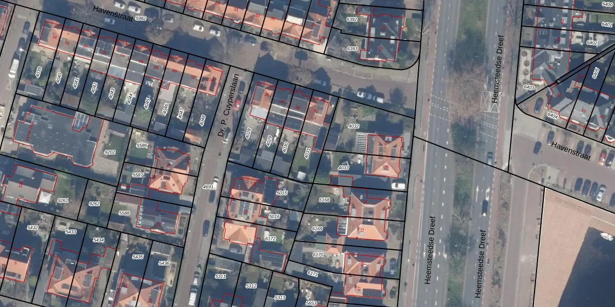 Gebruik de zoekbalk of klik op een perceel om informatie over het perceel te bekijken.