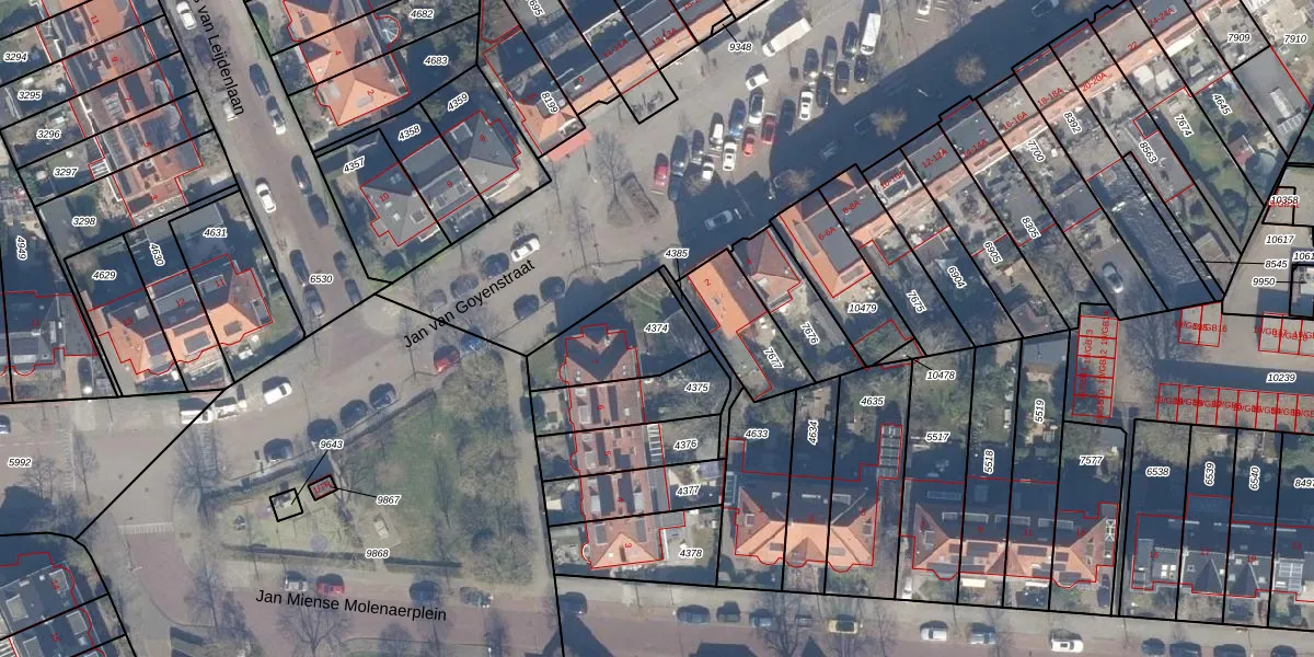 Gebruik de zoekbalk of klik op een perceel om informatie over het perceel te bekijken.