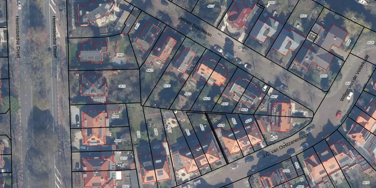 Gebruik de zoekbalk of klik op een perceel om informatie over het perceel te bekijken.