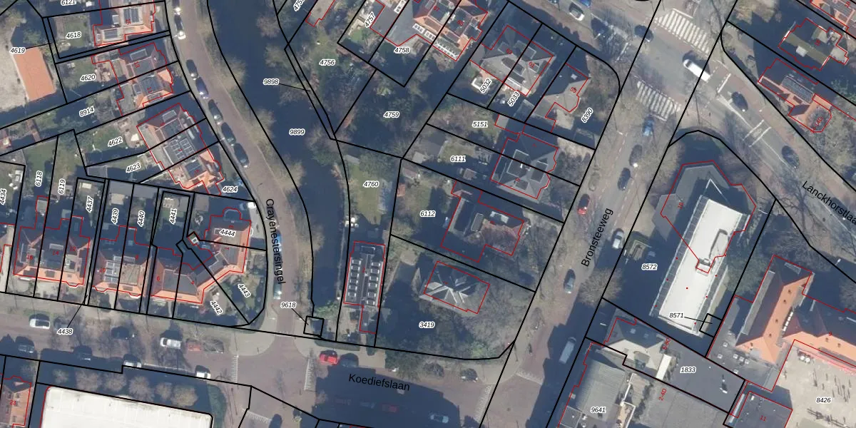 Gebruik de zoekbalk of klik op een perceel om informatie over het perceel te bekijken.