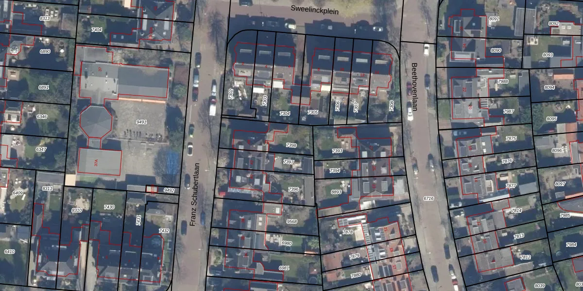 Gebruik de zoekbalk of klik op een perceel om informatie over het perceel te bekijken.
