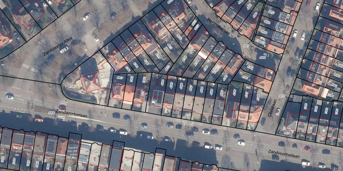 Gebruik de zoekbalk of klik op een perceel om informatie over het perceel te bekijken.