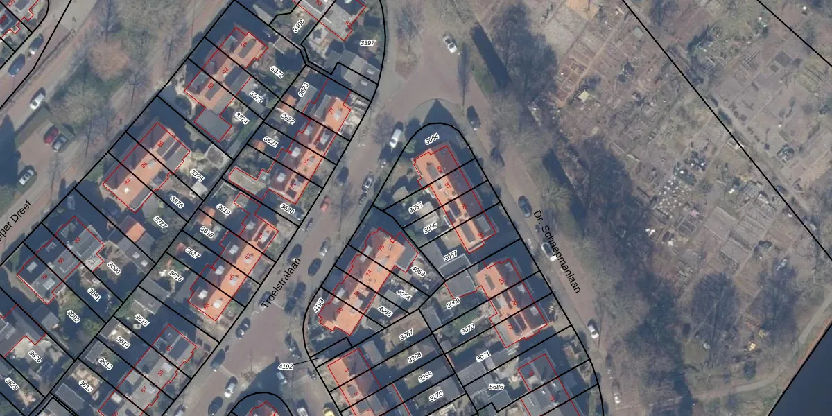 Gebruik de zoekbalk of klik op een perceel om informatie over het perceel te bekijken.