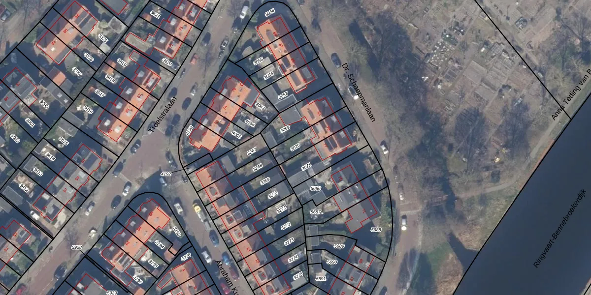 Gebruik de zoekbalk of klik op een perceel om informatie over het perceel te bekijken.