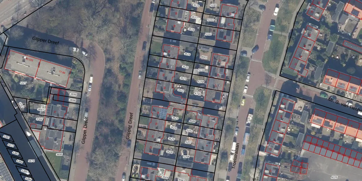 Gebruik de zoekbalk of klik op een perceel om informatie over het perceel te bekijken.