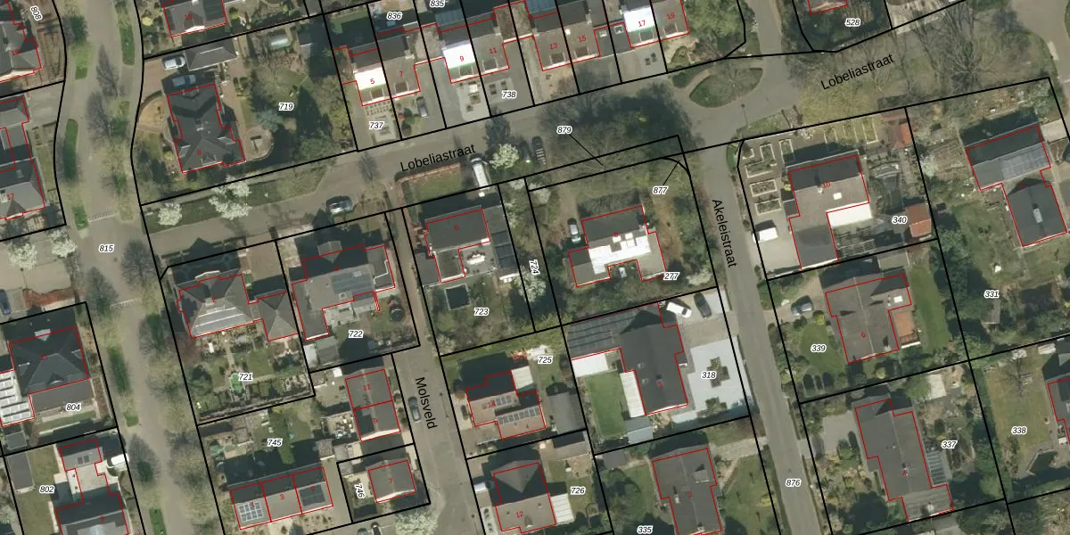 Gebruik de zoekbalk of klik op een perceel om informatie over het perceel te bekijken.