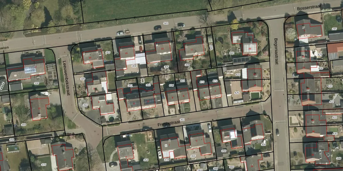 Gebruik de zoekbalk of klik op een perceel om informatie over het perceel te bekijken.