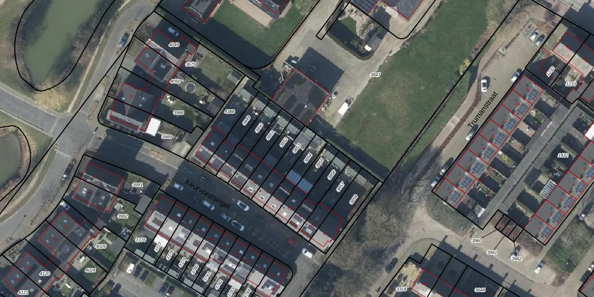 Gebruik de zoekbalk of klik op een perceel om informatie over het perceel te bekijken.