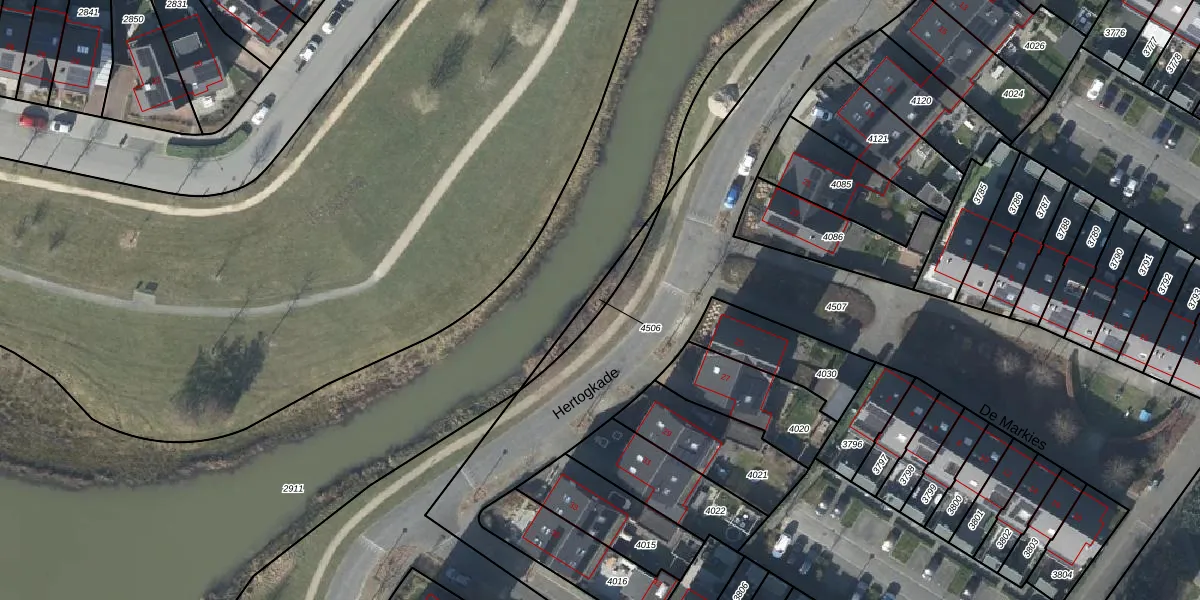 Gebruik de zoekbalk of klik op een perceel om informatie over het perceel te bekijken.