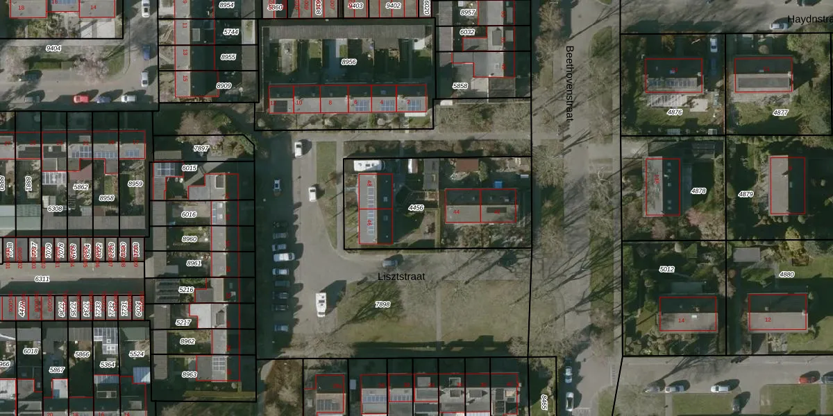 Gebruik de zoekbalk of klik op een perceel om informatie over het perceel te bekijken.