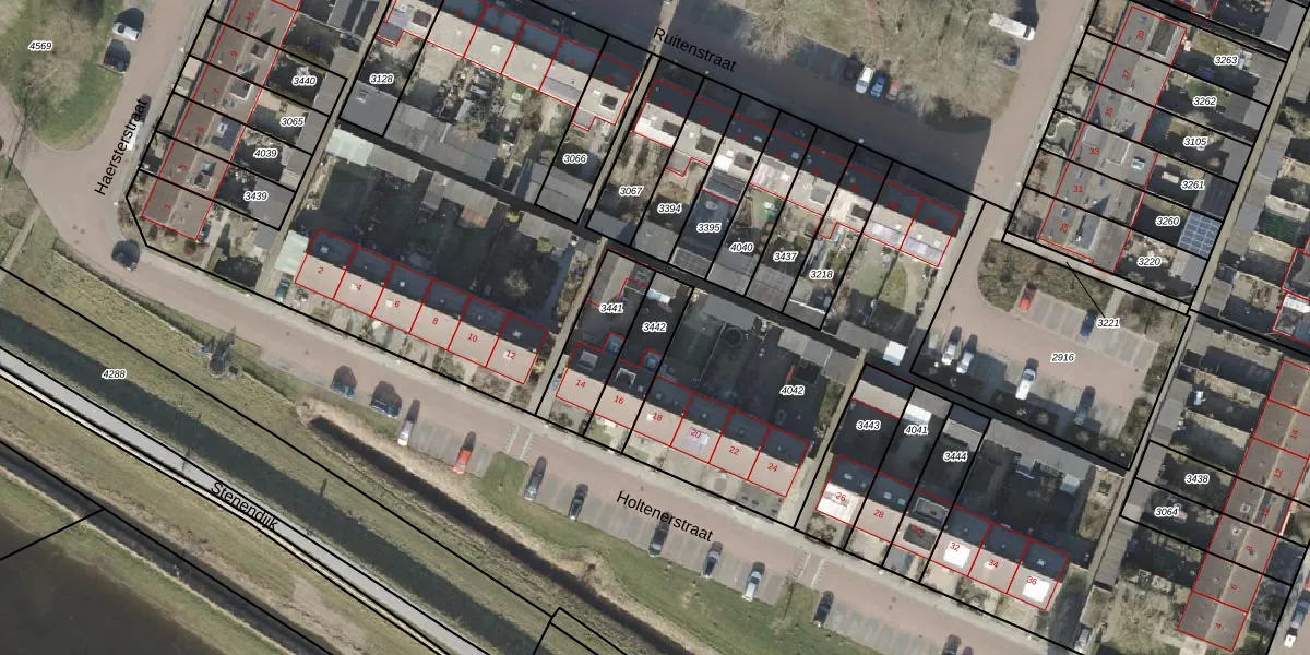 Gebruik de zoekbalk of klik op een perceel om informatie over het perceel te bekijken.