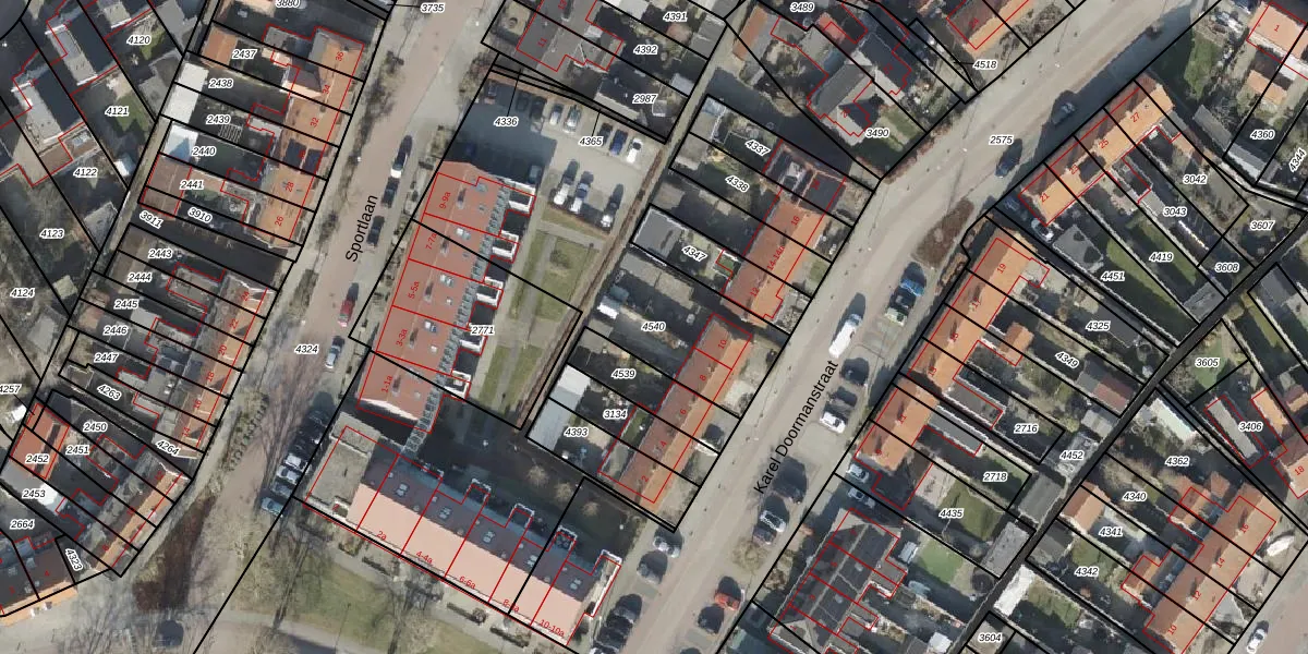 Gebruik de zoekbalk of klik op een perceel om informatie over het perceel te bekijken.