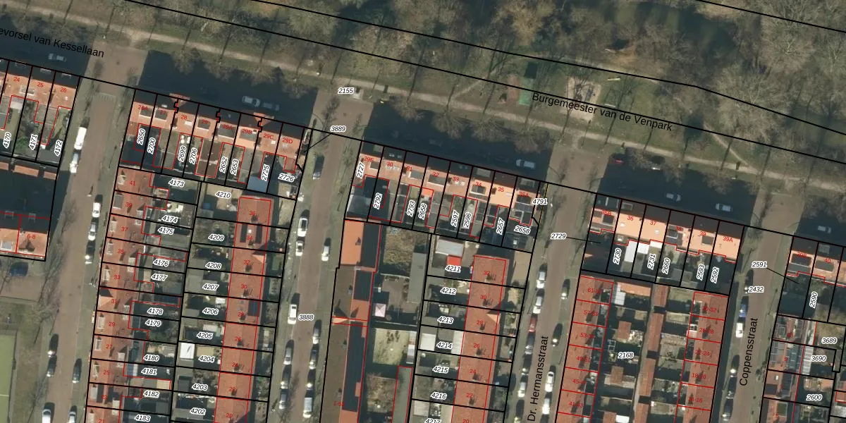 Gebruik de zoekbalk of klik op een perceel om informatie over het perceel te bekijken.