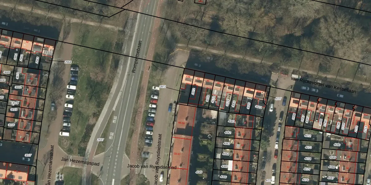 Gebruik de zoekbalk of klik op een perceel om informatie over het perceel te bekijken.