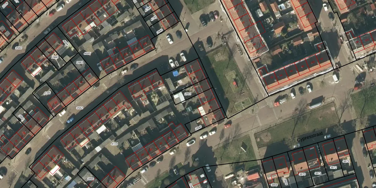 Gebruik de zoekbalk of klik op een perceel om informatie over het perceel te bekijken.
