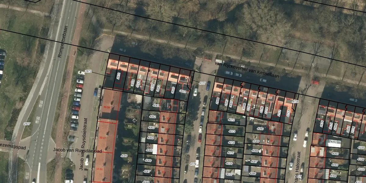 Gebruik de zoekbalk of klik op een perceel om informatie over het perceel te bekijken.