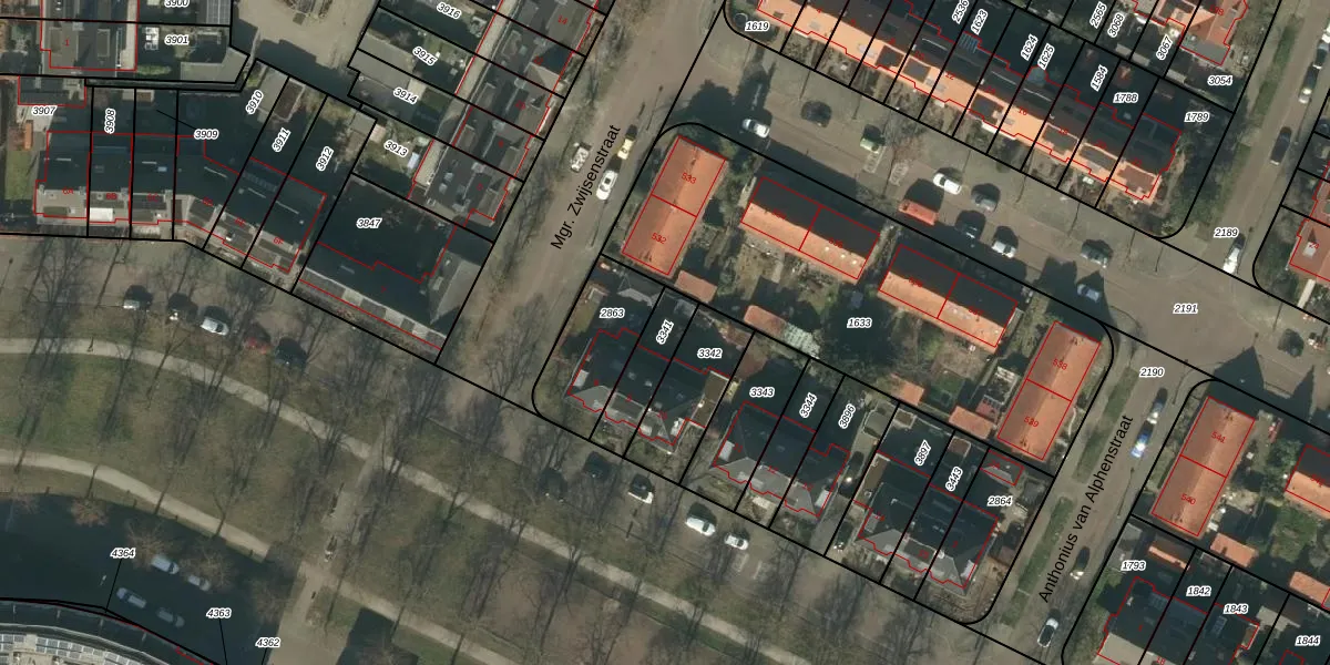 Gebruik de zoekbalk of klik op een perceel om informatie over het perceel te bekijken.
