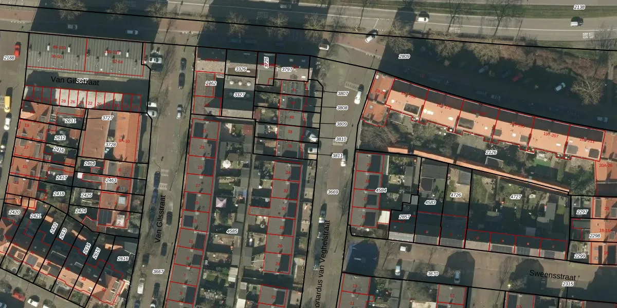 Gebruik de zoekbalk of klik op een perceel om informatie over het perceel te bekijken.