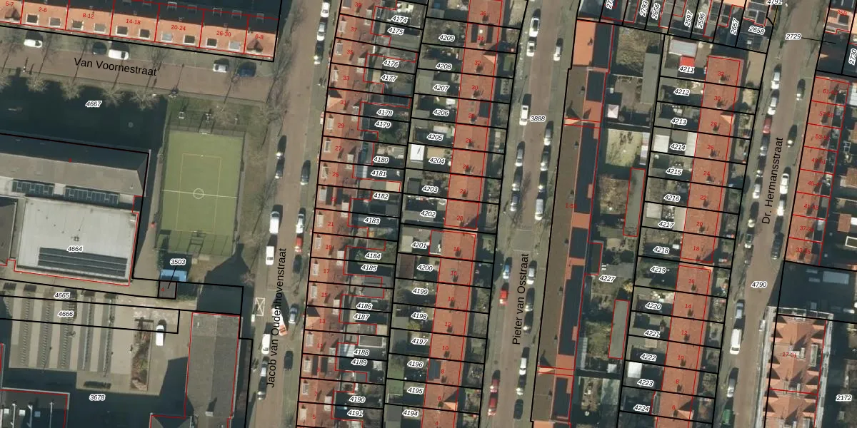 Gebruik de zoekbalk of klik op een perceel om informatie over het perceel te bekijken.